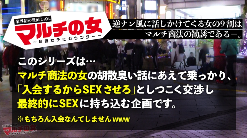 マルチ商法の勧誘を行う女性に対し、契約を盾に性的関係を迫るという背徳的な企画です。怪しげなビジネスの話を持ちかける彼女に対し、「入会する代わりに体を許せ」としつこく交渉を重ね、最終的にホテルへと連れ込むことに成功します。もちろん、実際に入会する意思などは微塵もありません。ホテル入室後は、間髪入れずに激しい攻めを開始。チ●コの押し付けから始まり、マスク越しのフェラチオ、執拗なイラマチオ、そして乳房や乳首への愛撫を徹底的に行います。さらにパンストを豪快に引き裂き、アナルへの接写や愛撫、手マン、クンニ、パイコキと執拗に追い込みます。本番では正常位、寝バック、立ちバック、騎乗位、グラインド騎乗位、背面座位、側位といった多彩な体位を網羅。女性側からの乳首攻めも交えつつ、最後は顔射で締めくくります。